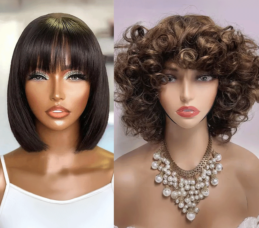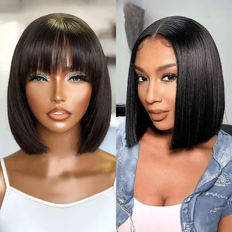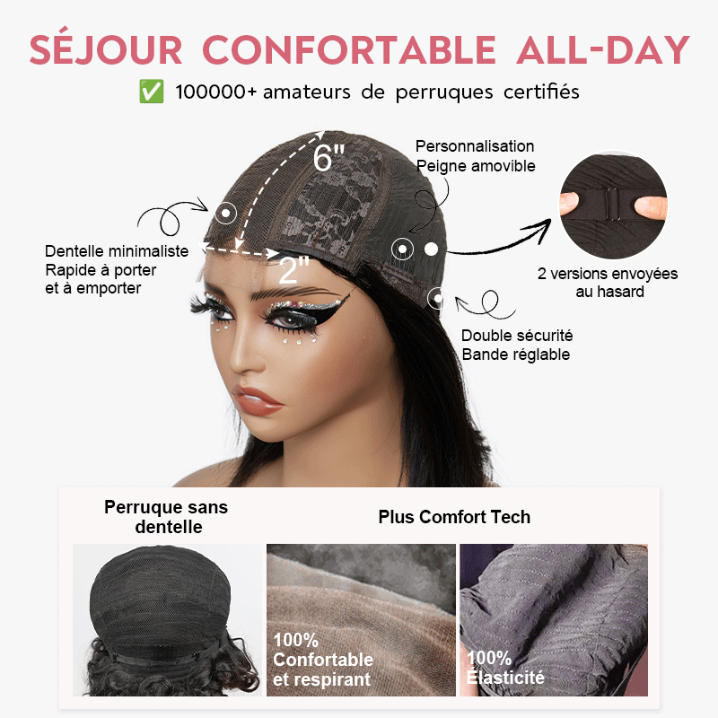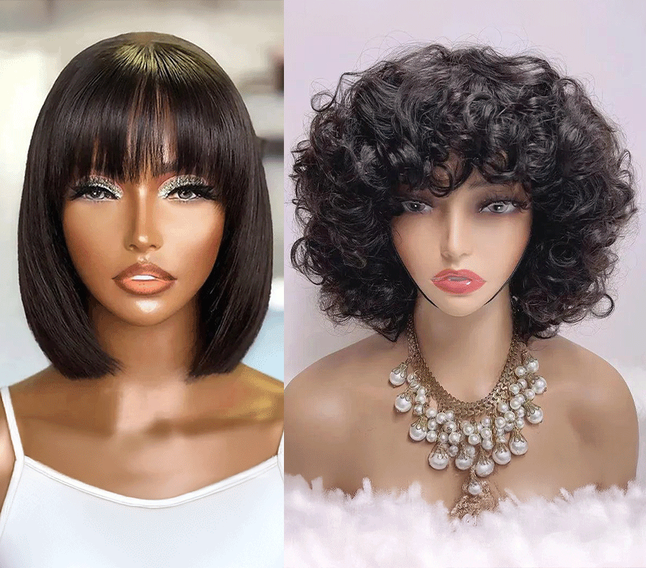 2 𝑭𝑶𝑹 €99🔥8"Lisse Avec Frange Bob+8"Soyeux Lisse 2x6 Dentelle/Noir Boucles Rebondies/Boucle Afro/Marron Boucles Rebondies Perruque