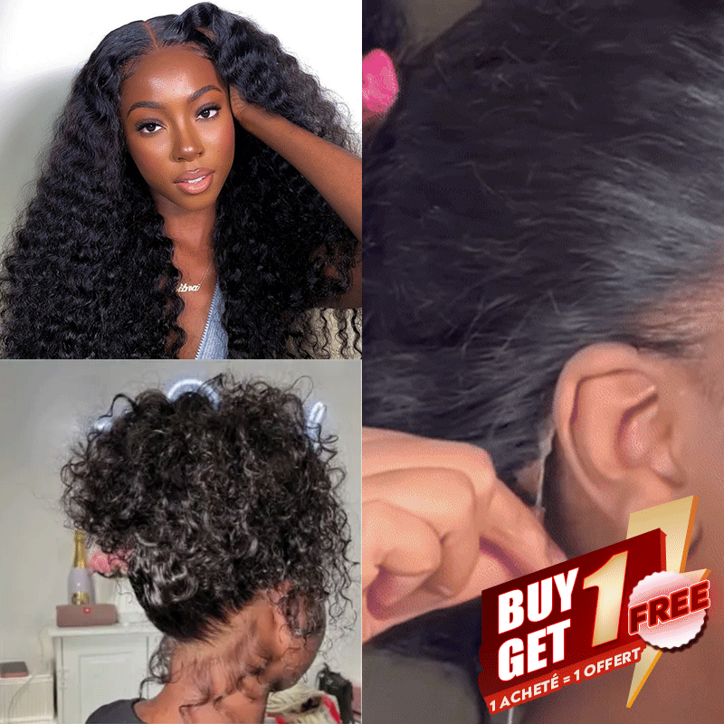 𝑩𝒖𝒚 1 𝑮𝒆𝒕 1 𝑭𝒓𝒆𝒆💥 360 Perruque En Frontale Dentelle Brésilien Bouclé Casquette À Cordon Flexi-Fit Invisible