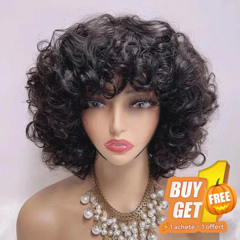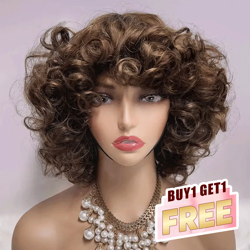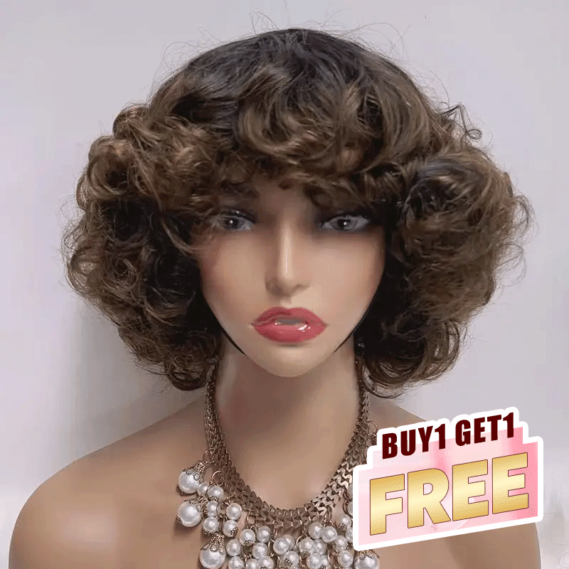 𝑩𝒖𝒚 1 𝑮𝒆𝒕 1 𝑭𝒓𝒆𝒆💥 Glueless 3 Couleur Stylisé Boucles Rebondies 99j/Highligh Marron Bob Perruque Sans Colle