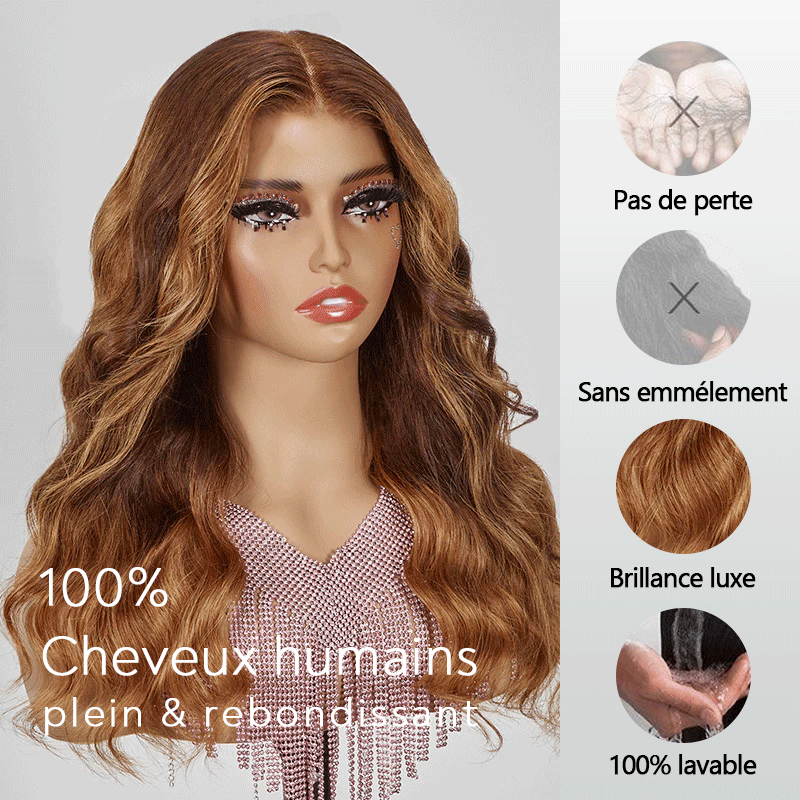 Haute Qualité Brillant Brun Chaud 9x6 Glueless Wear Go Perruque Sans Colle Body Wave