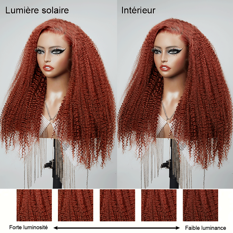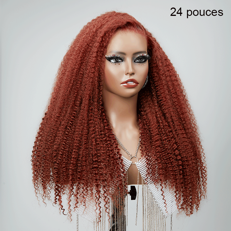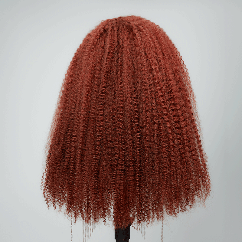 Effet Volume Instantané 9x6 Glueless Couleur Brun rougeâtre Nœuds Pré-blanchis Kinky Curly Perruque Sans Colle