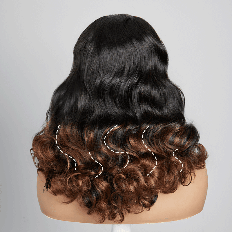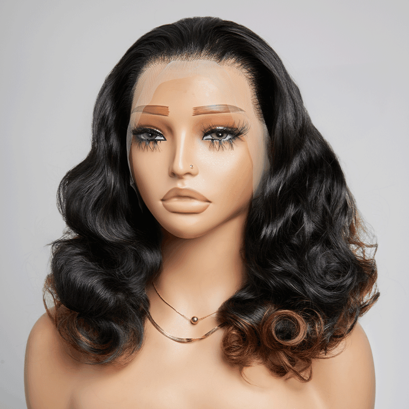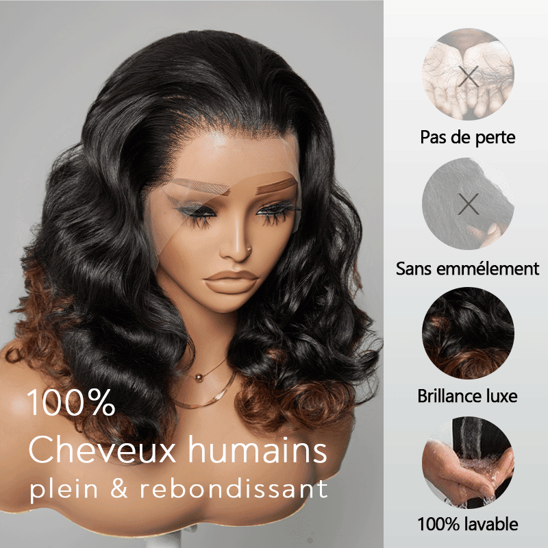Volumineux Couleur Ombre Noir À Caramel 13×4 Dentelle Body Wave Perruque 300% Densité