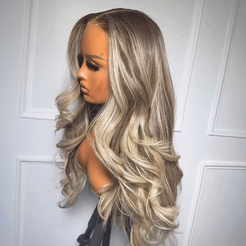 𝐋𝐚𝐬𝐭 𝟗 Glueless Couleur Blond Clair Avec Un Brun Subtil 13x4 Perruque Sans Colle Body Wave