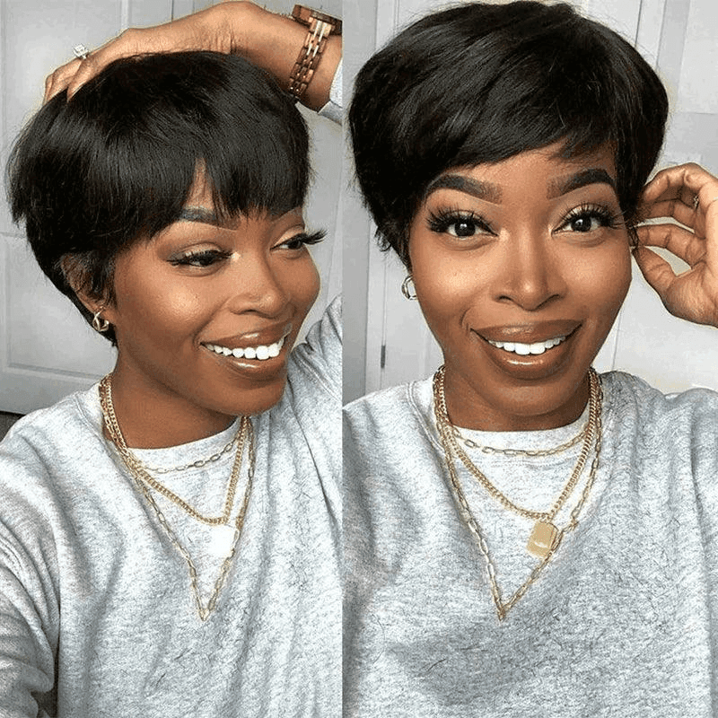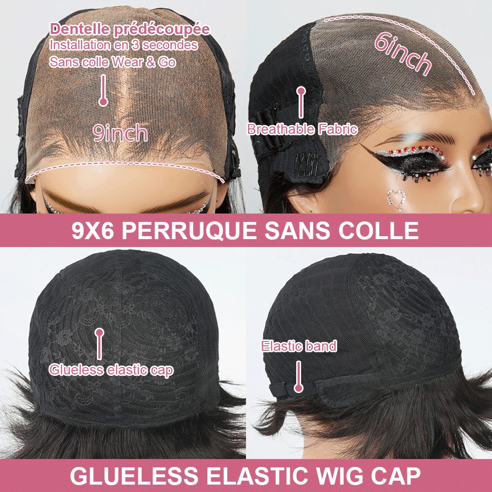 𝟑ᵉ 𝐩𝐞𝐫𝐫𝐮𝐪𝐮𝐞 𝐚̀ €𝟎,𝟏🔥Couche 7x4 Glueless Bob Perruque Sans Colle 10"+Glueless Pixie Perruque Straight Taille Modèle