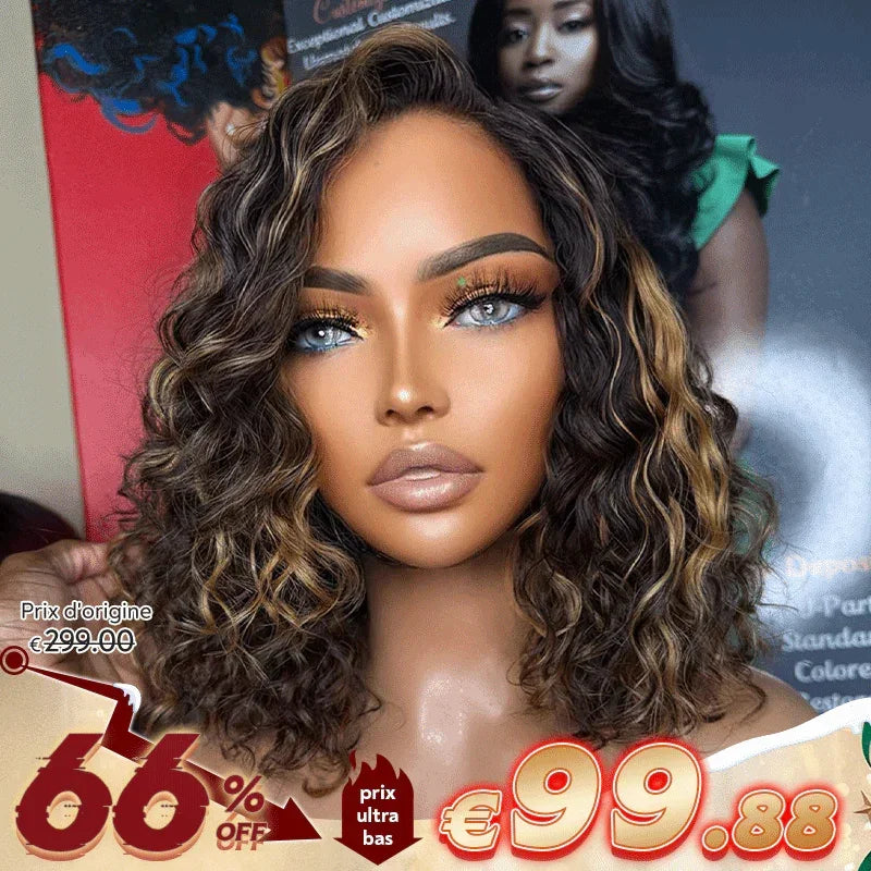 Glueless Couleur Mèches Blondes Miel 7x4 Nœuds Blanchis Perruque Sans Colle Bouclé