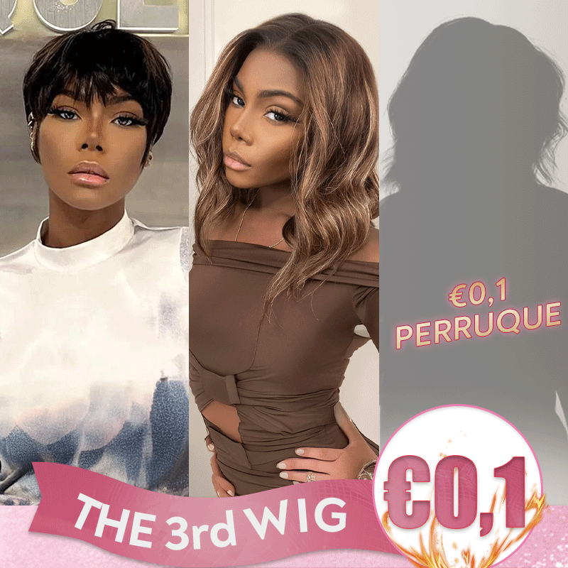 𝟑ᵉ 𝐩𝐞𝐫𝐫𝐮𝐪𝐮𝐞 𝐚̀ €𝟎,𝟏🔥Glueless Perruque 13x4 Ondulé 10"+Glueless Pixie Perruque Straight Taille Modèle