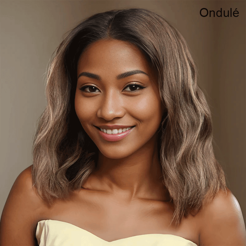 Pour les perruques bouclées et ondulées, vous devez lisser les cheveux avant de les mesurer. Etirez doucement les cheveux jusqu'à leur longueur maximale, puis mesurez du haut de la perruque jusqu'à l'extrémité des cheveux.