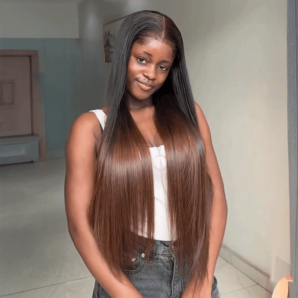Ombre marron 5x5 glueless lisse 250 densité; Noir pas de dentelle lisse 200 densité |
