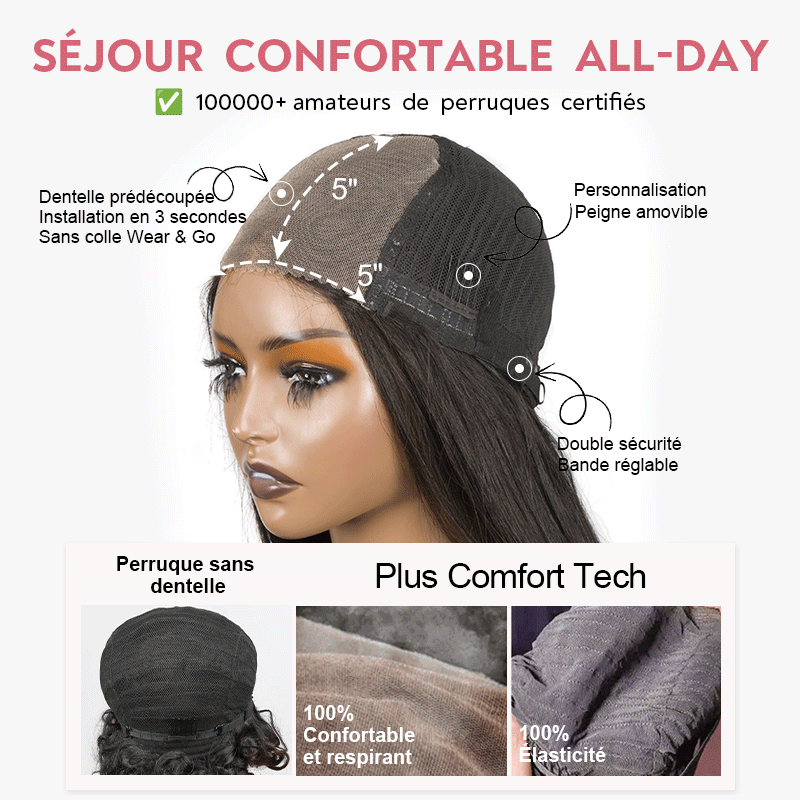 𝟑ᵉ 𝐩𝐞𝐫𝐫𝐮𝐪𝐮𝐞 𝐚̀ €𝟎,𝟏🔥Glueless Perruque 5x5 Lisse+Glueless Pixie Perruque Lisse Taille Modèle
