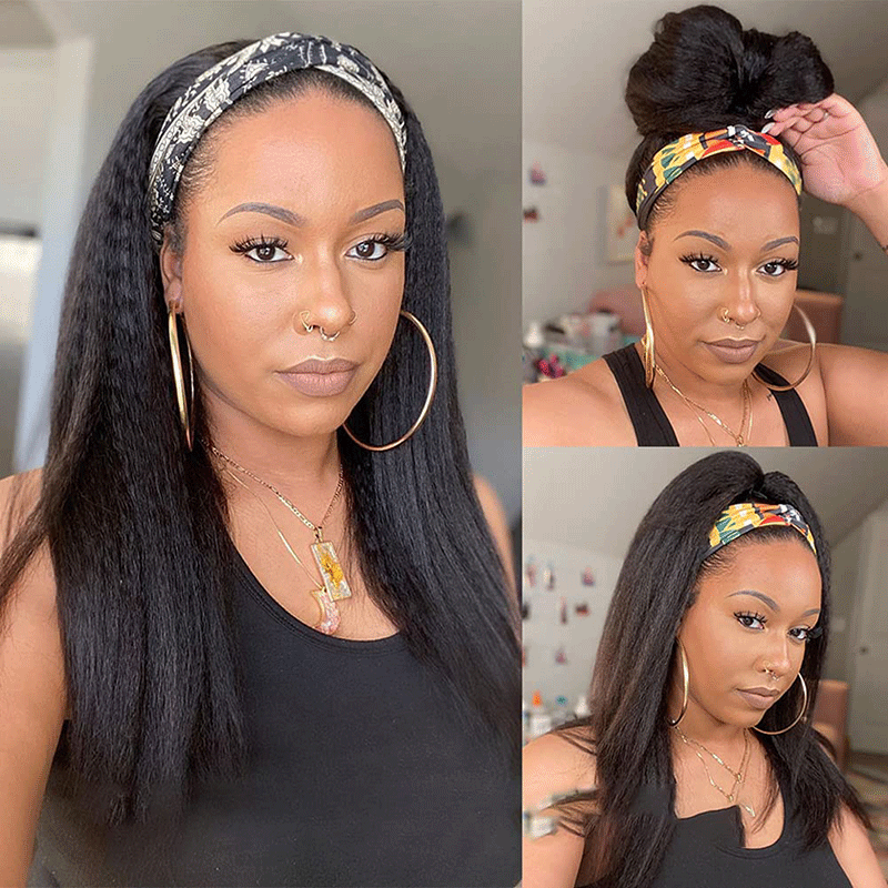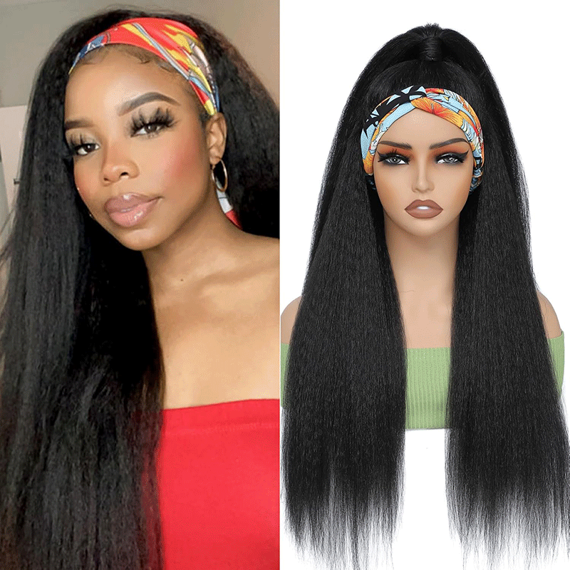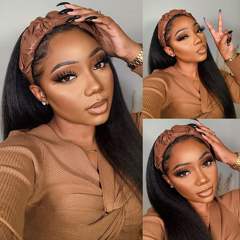 Adapté Aux Débutants Glueless Bandeau Yaki Straight Perruque Cheveux Humains