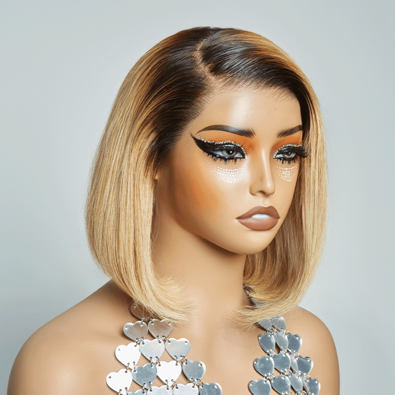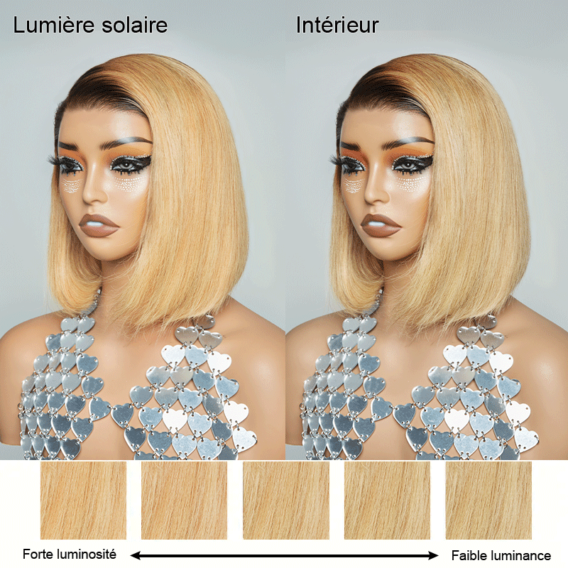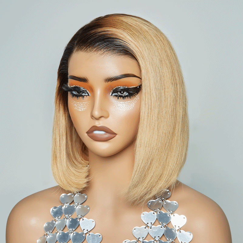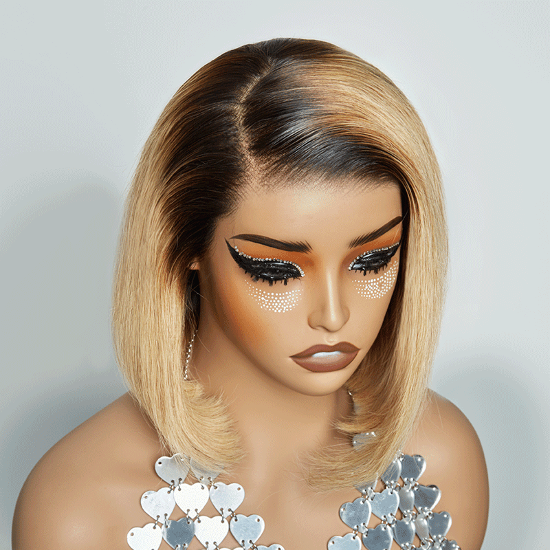Couleurs Tendances 7x4 Guleless Couleur Blond Ombre Couche Bob Perruque Cheveux Humains Lisse