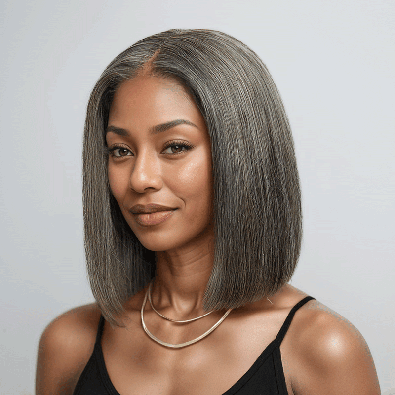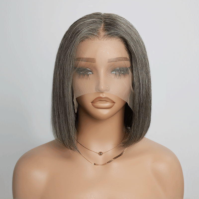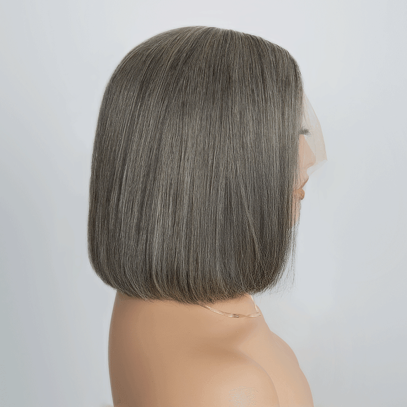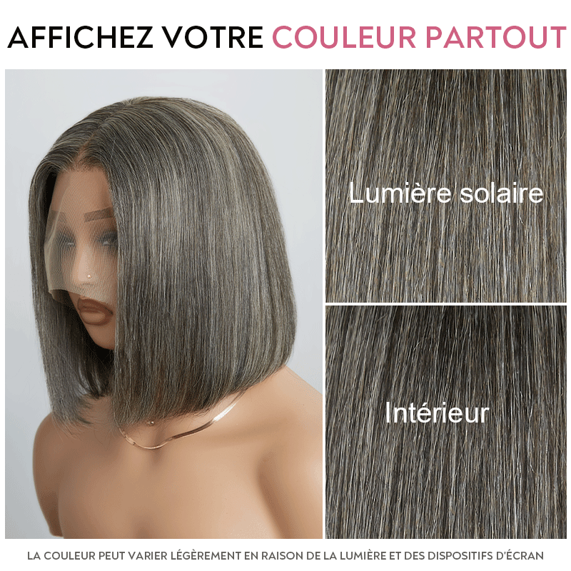 Boss Mature Lisse Confidence Elegance Bob Couleur Lin Gris 13x4 Dentelle Perruque Cheveux Humains