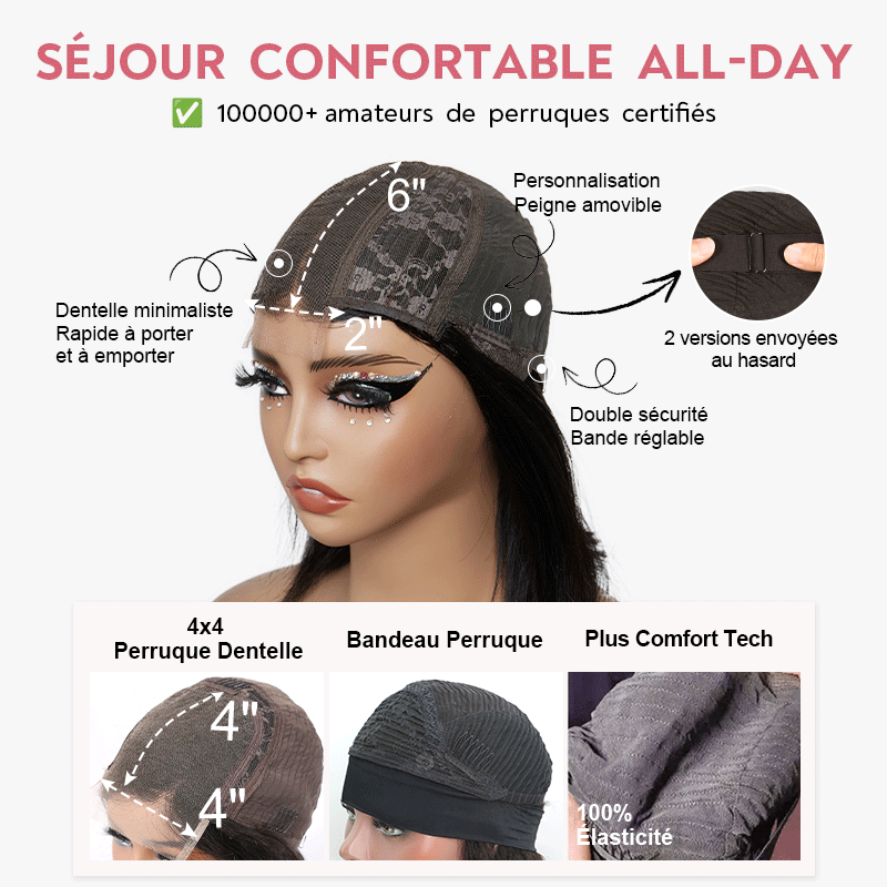 2 𝑭𝑶𝑹 €99🔥 Perruque Bob Bandeau Cool Pour Débutants Pour L'Été Cheveux Humains Vierges