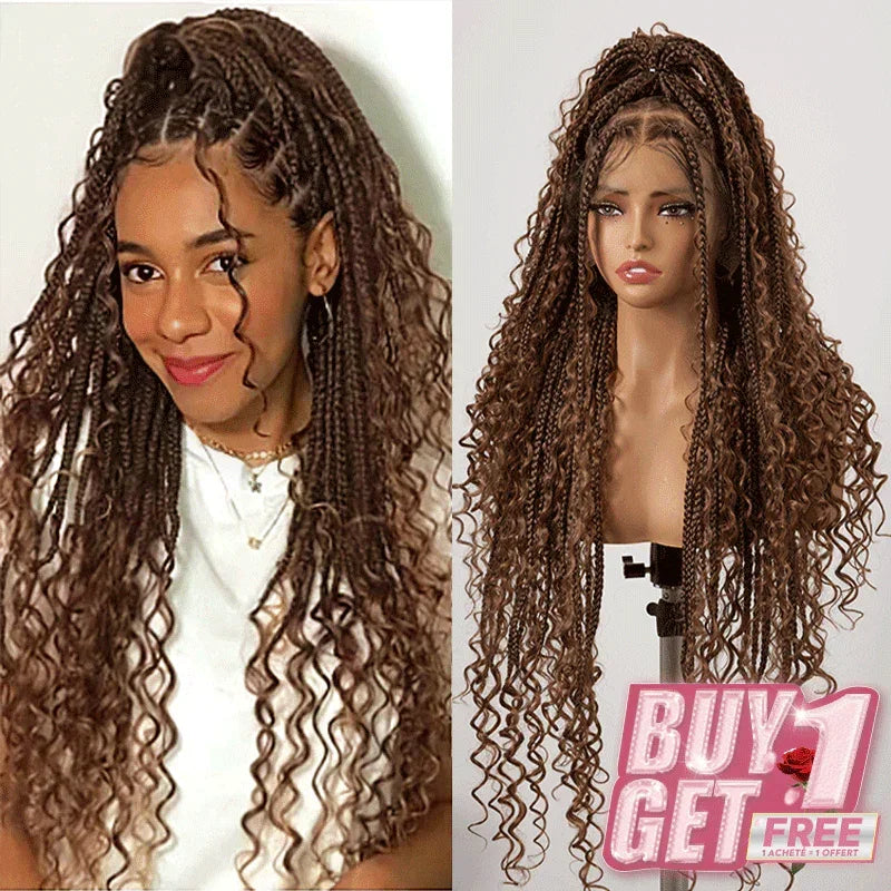 𝑩𝒖𝒚 1 𝑮𝒆𝒕 1 𝑭𝒓𝒆𝒆💥36 Pouces Perruque Tressée Bohème Brun Chocolat En Dentelle Complète Avec Cheveux De Bébé Synthétiques De Qualité Supérieure 300% Densité