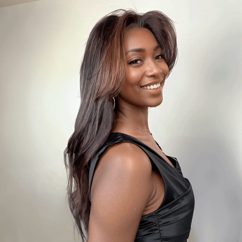 𝑩𝒖𝒚 1 𝑮𝒆𝒕 1 𝑭𝒓𝒆𝒆💥 13x4 Glueless Perruque Couleur Mèches Brunes Cheveux Noirs Mélangés Ondulé