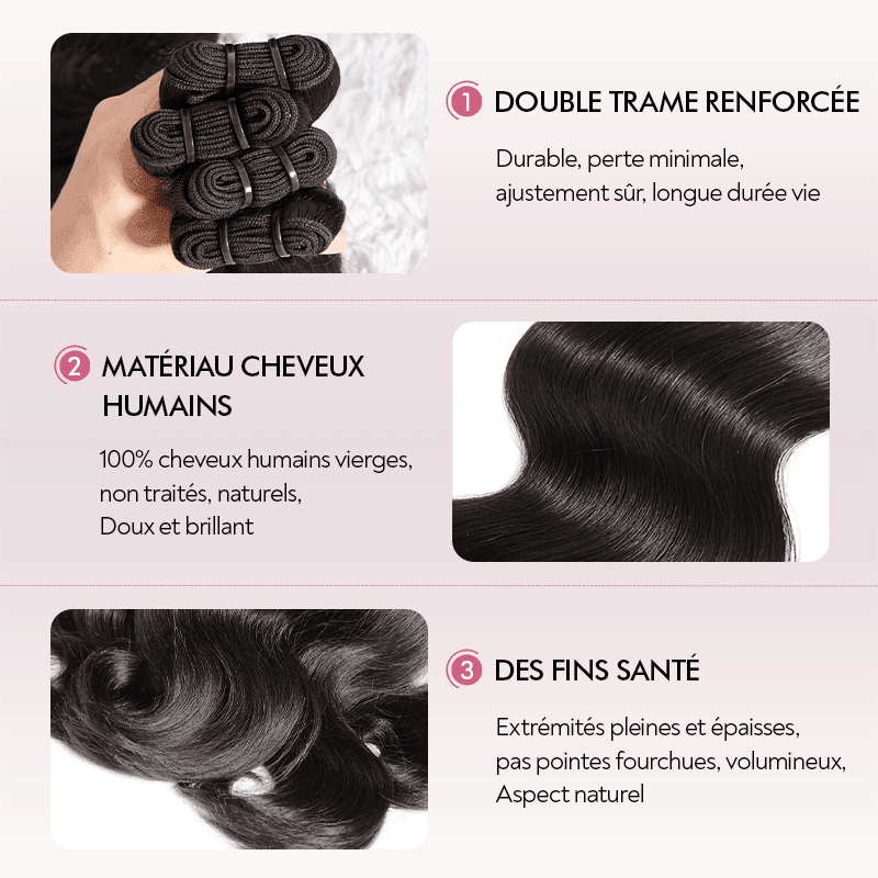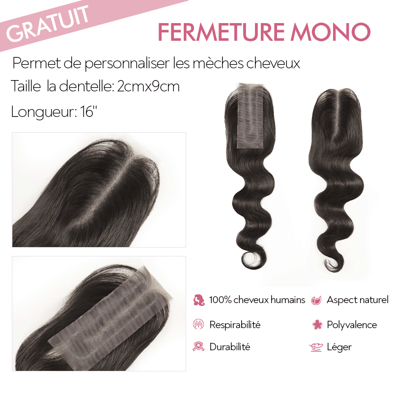 Fermeture Mono Top Gratuite Tissage Cheveux Bruts Body Wave Extensions