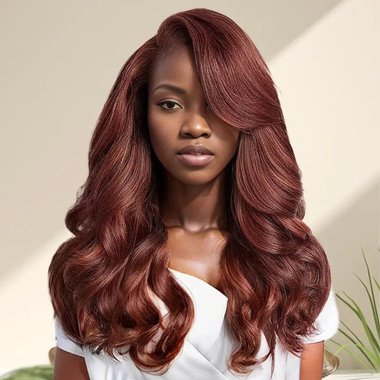 13x4 Glueless Brun Rougeâtre Couleur Perruque Sans Colle Body Wave