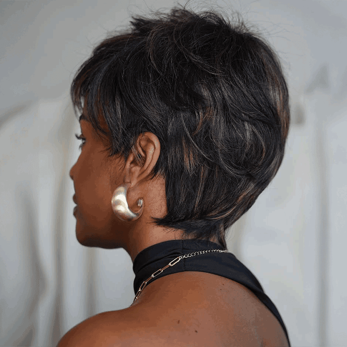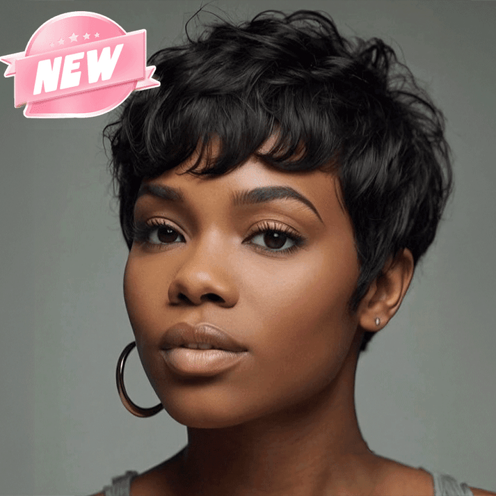 4 𝑭𝑶𝑹 €89🔥Coupe Pixie 13x4 Dentelle Lisse+Pixie Cut Bouclés Avec Frange+Highlight Pixie Bob Lisse+Coupe Pixie Avec Ondulation De L'eau Perruque