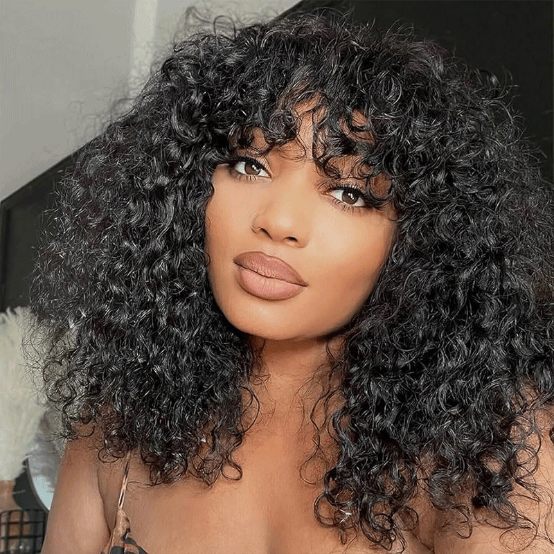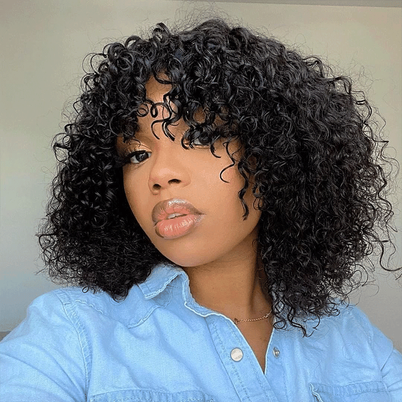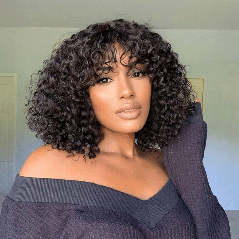 Bob Curly Wig with Bangs Black #4/27 Color 200% Density