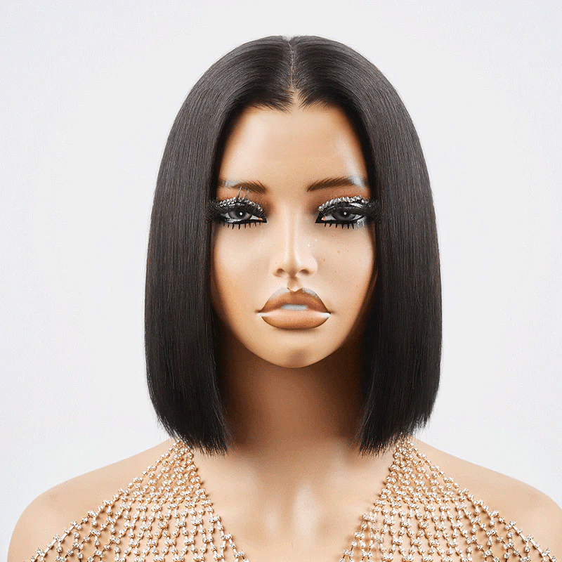 Pour mesurer la longueur d'une perruque droite, partez du centre du bonnet de perruque ou de la tête et mesurez jusqu'à la mèche de cheveux la plus longue en bas.