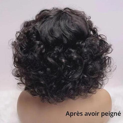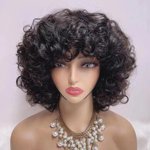 Bob Curly Wig with Bangs Black #4/27 Color 200% Density