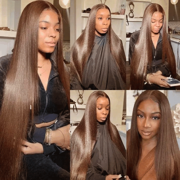 ๐ฉ๐๐ 1 ๐ฎ๐๐ 1 ๐ญ๐๐๐๐ฅ 13x4 Perruque Sans Colle Couleur Brun Chocolat Lisse Cheveux Humains