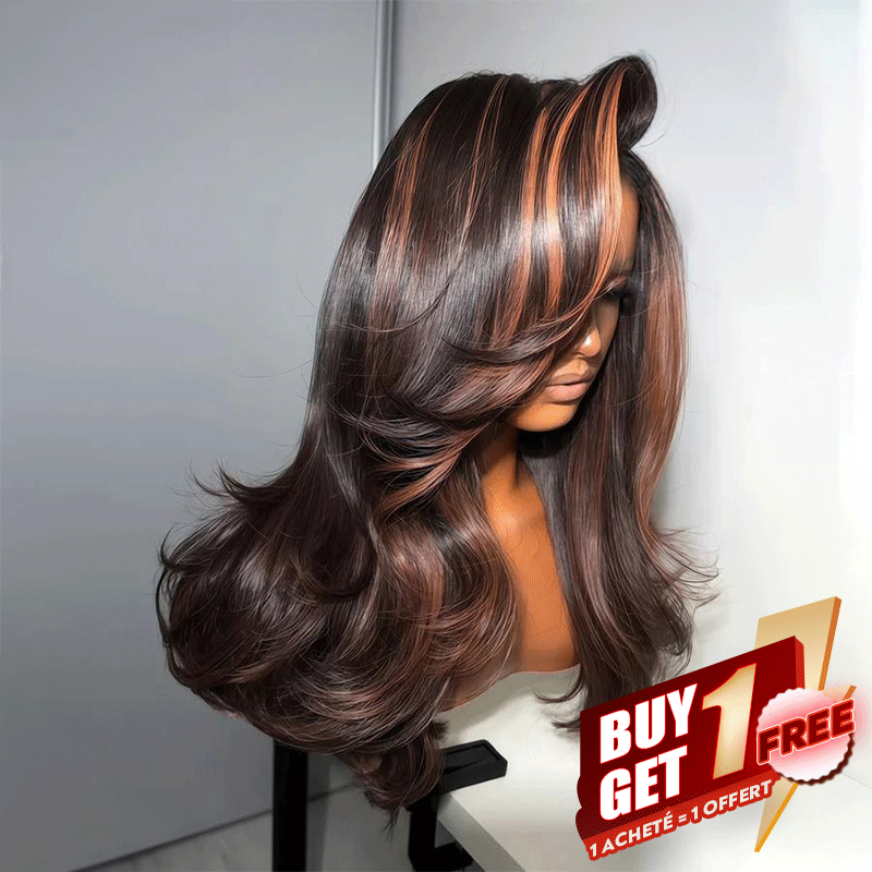 𝑩𝒖𝒚 1 𝑮𝒆𝒕 1 𝑭𝒓𝒆𝒆💥Style Salon Luxueux Glueless Couleur Brun Highlight 7x4 Perruque Sans Colle Body Wave