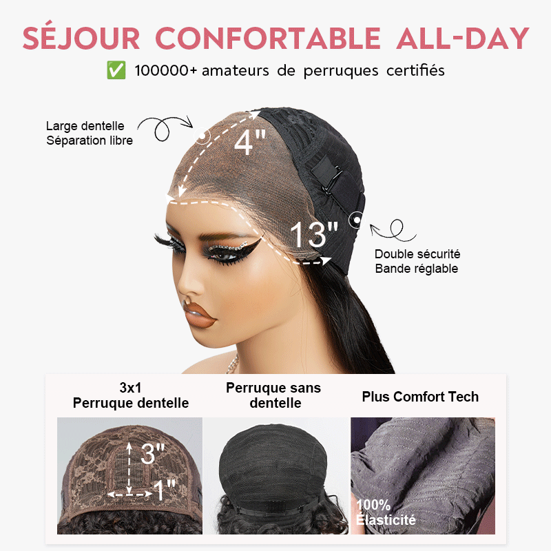 8"Lisse-No lace-200%; 8"Bouclée-13×4 Glueless-200%; 10"Bouclée-3x1 Dentelle-250% |