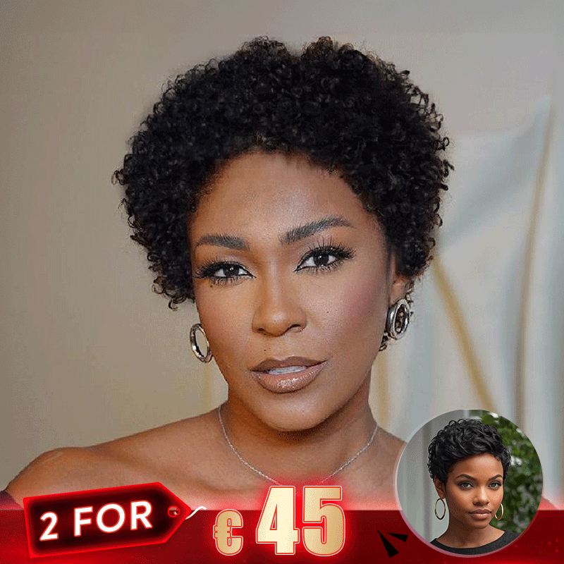 2 𝑭𝑶𝑹 €45🔥Glueless Easy-Wear Chic Sans Effort Laine Bouclée+Glueless Pixie Court Lisse Perruque Sans Colle