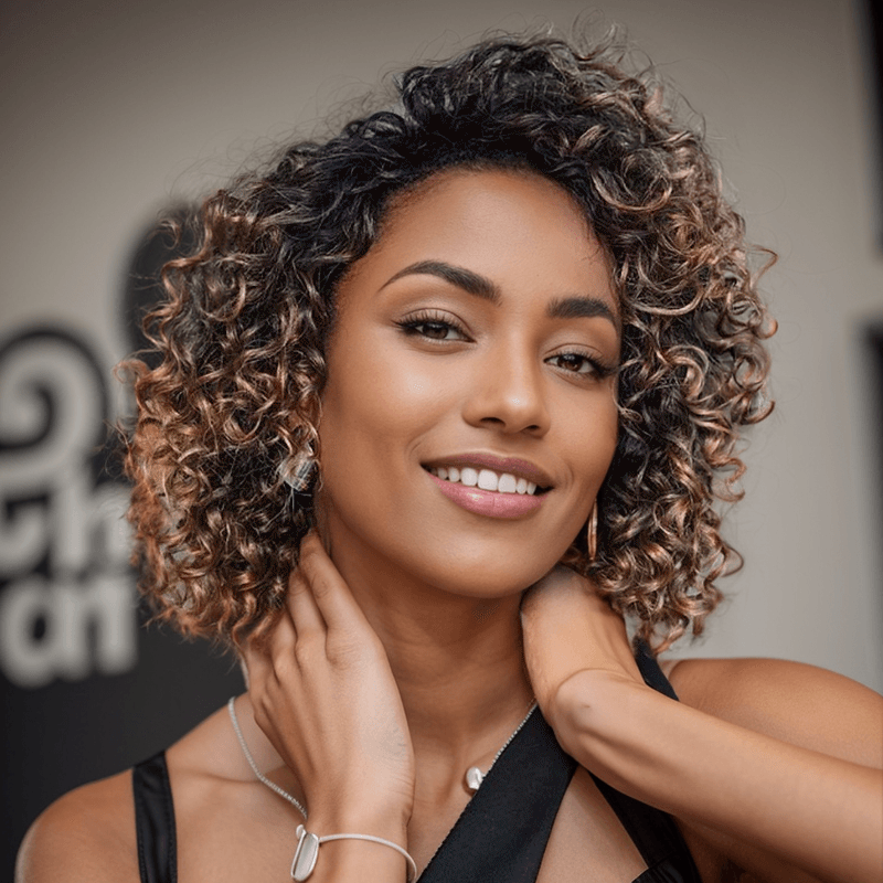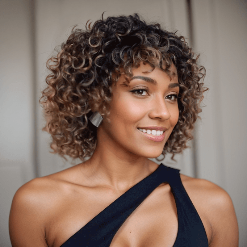 Glueless Couleur Blond Foncé Doré Ombré Perruque Sans Colle Bouclé Bob