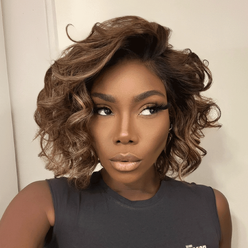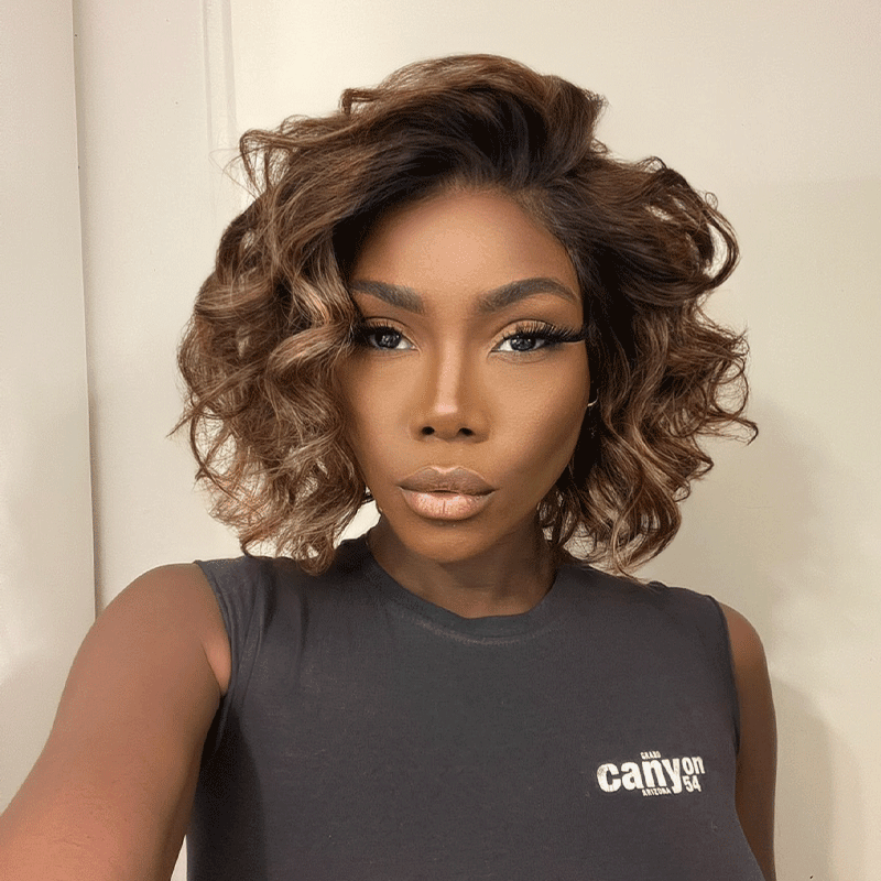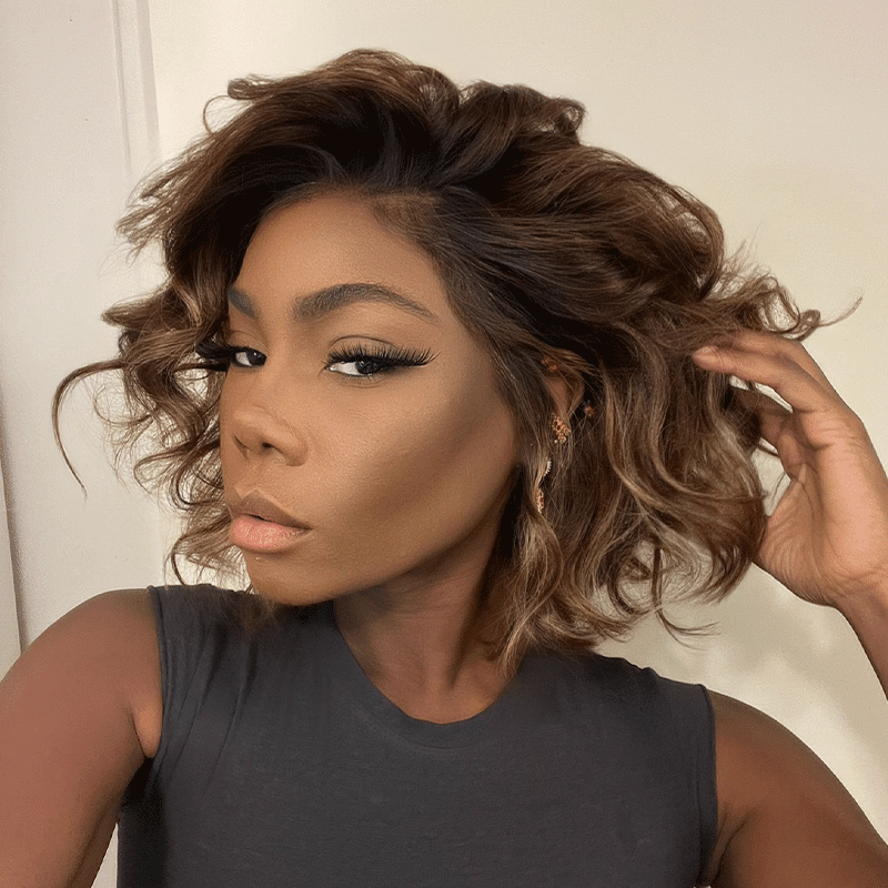 13x4 Glueless Vague Luxueuse Couleur Marron Foncé Highlight Perruque Sans Colle
