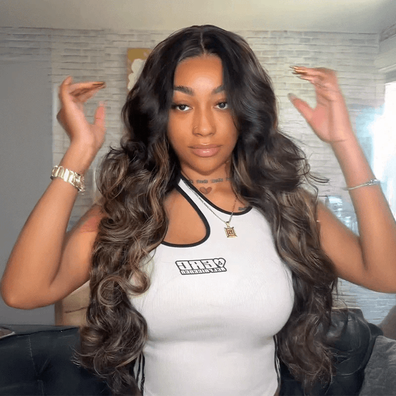 13x4 Glueless Magnifique Couleur Highlights Perruque Sans Colle Vague D'eau Cheveux Humains
