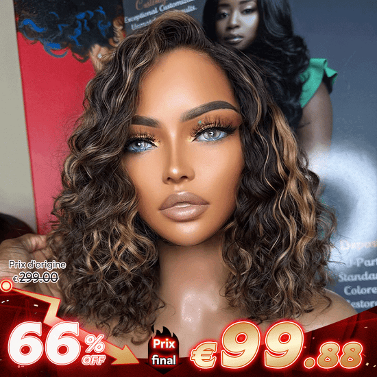 Glueless Couleur Mèches Blondes Miel 7x4 Nœuds Blanchis Perruque Sans Colle Bouclé