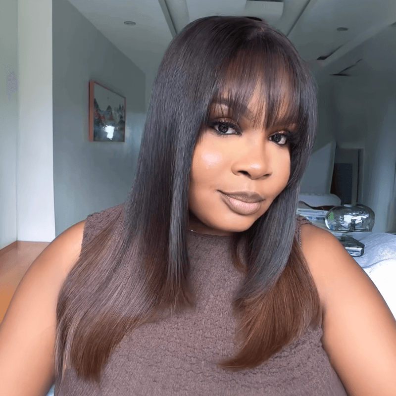 Glueless Mèches Brun Couleur 13x4/4x4 Perruque Sans Colle Cheveux Humains Lisse