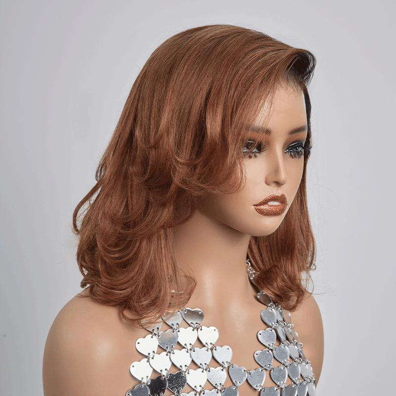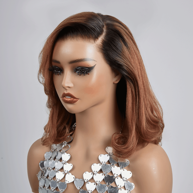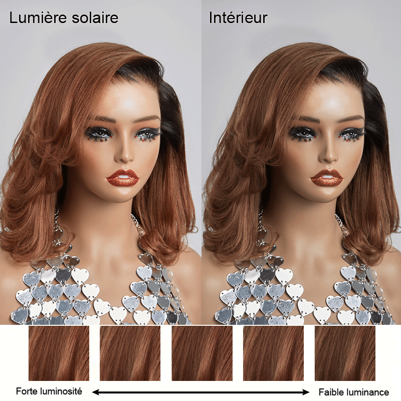 Glueless Couche 5x5 Ombre Marron Perruque Sans Colle Coupe Longueur D'épaule Ondulé Bob