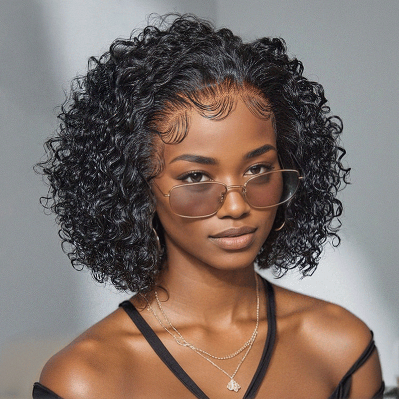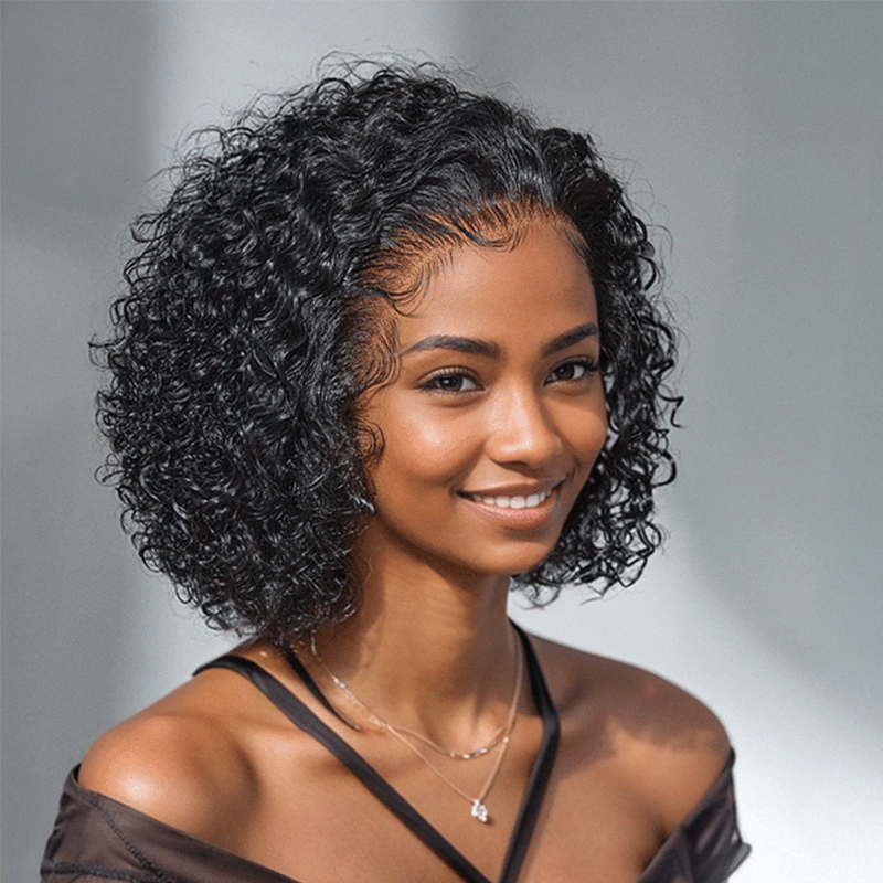 13x4 Glueless Mèches Brunes/Noir Jais Perruque Sans Colle Coupe Courte Vague Bouclée Bob