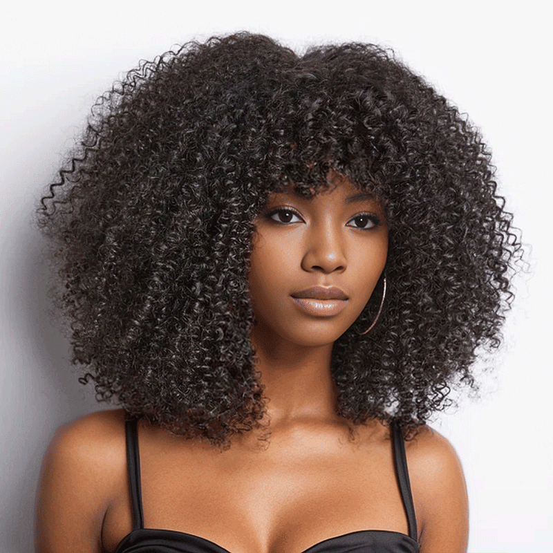 Glueless Prêt À Partir Boucles Rebondissantes Jerry Perruque Sans Colle Avec Frange