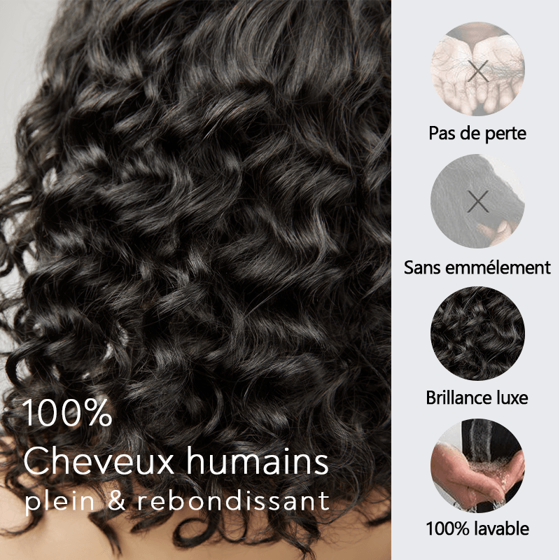 Pour les perruques bouclées et ondulées, vous devez lisser les cheveux avant de les mesurer. Etirez doucement les cheveux jusqu'à leur longueur maximale, puis mesurez du haut de la perruque jusqu'à l'extrémité des cheveux.