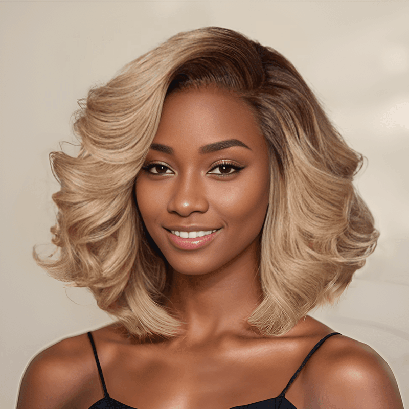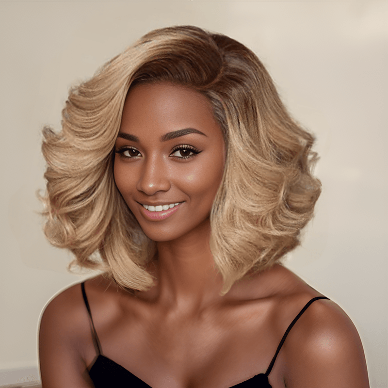 13x4 Guleless Perruque Style Bob Dégradée Blonde Ombrée Dentelle Pré-coupée