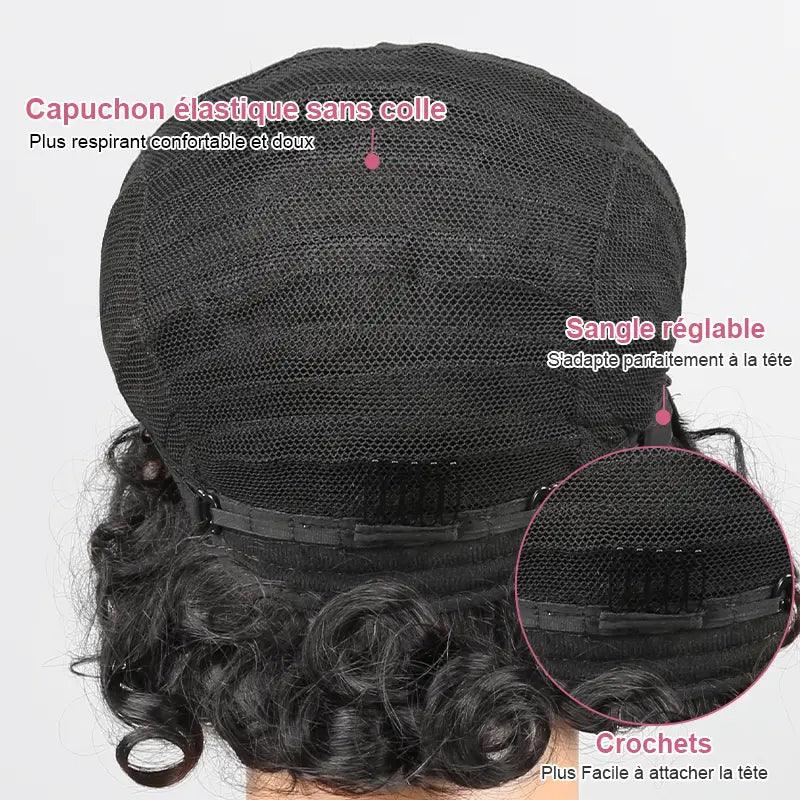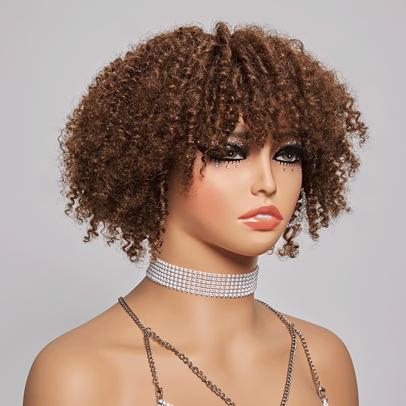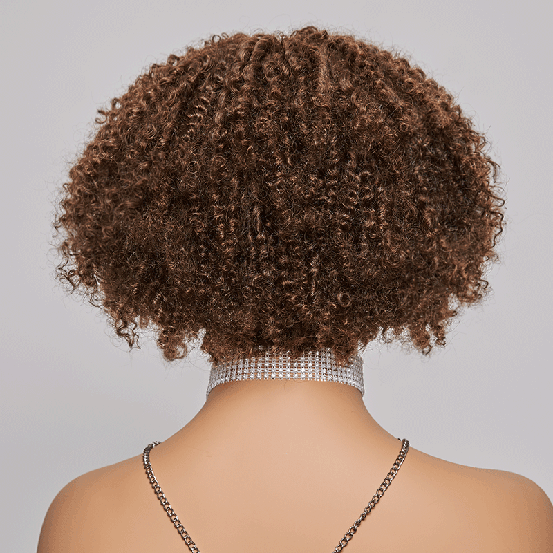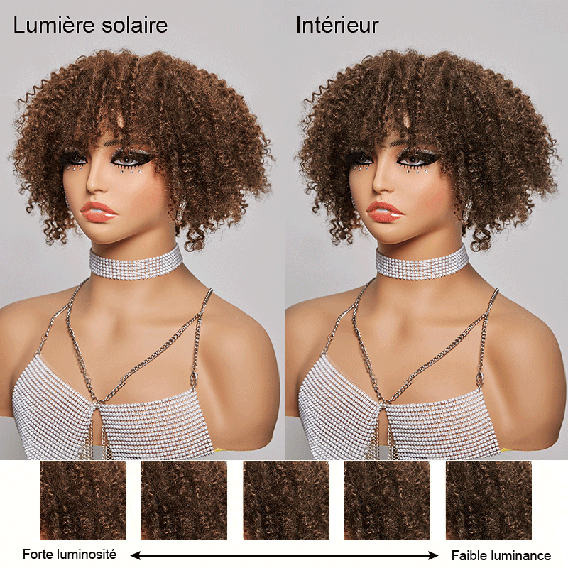 Glueless Brun Chocolat Jeter & Partir Bob Bouclée Perruque Sans Colle