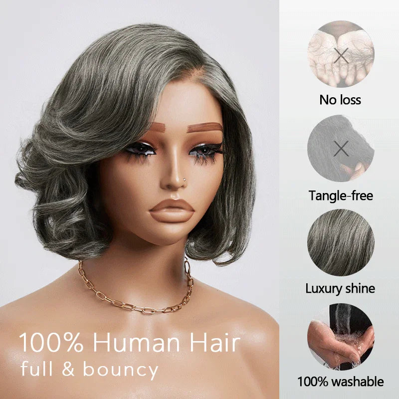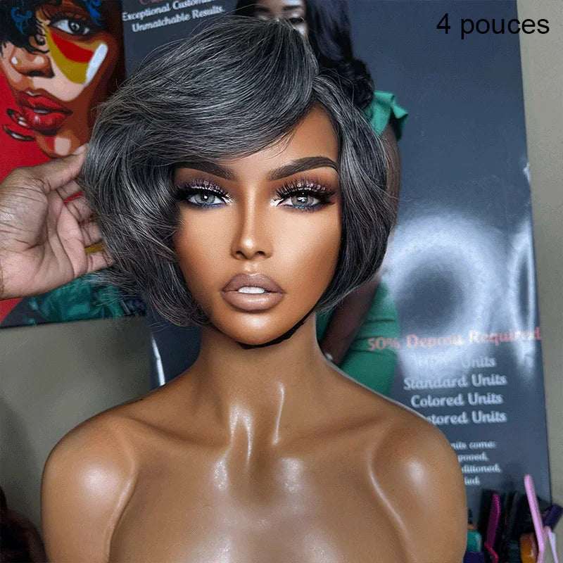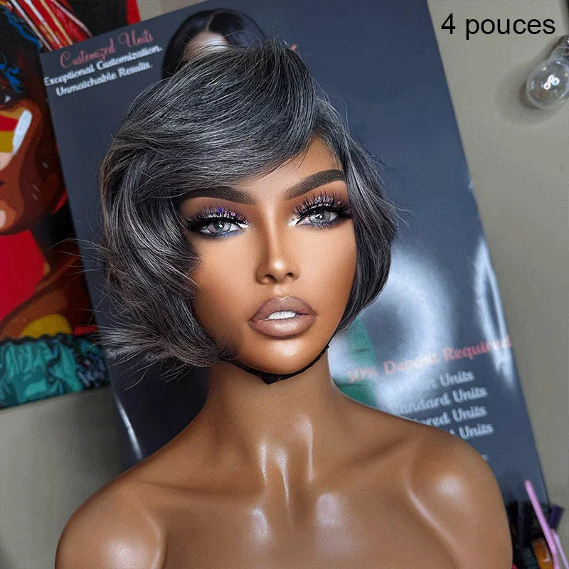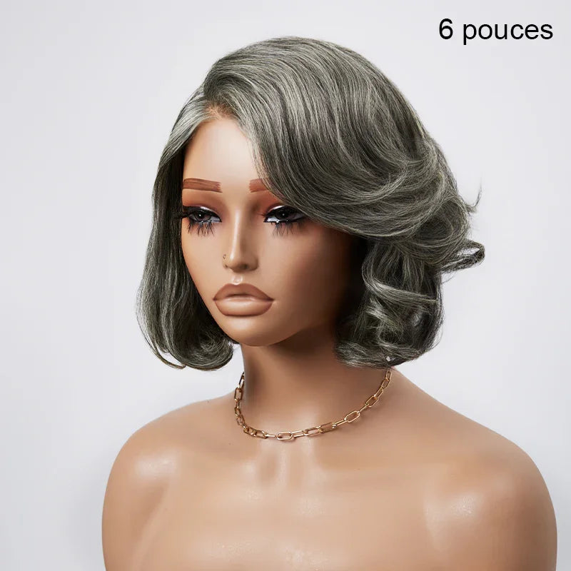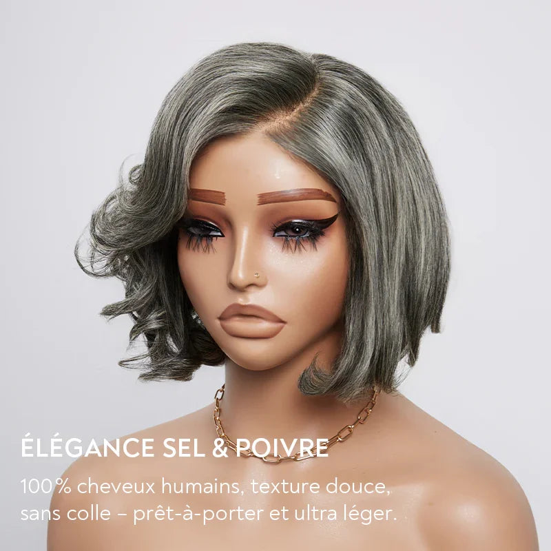 Patron mature Glueless Couleur Sel Et Poivre 5x5 Nœuds Blanchis Perruque Sans Colle