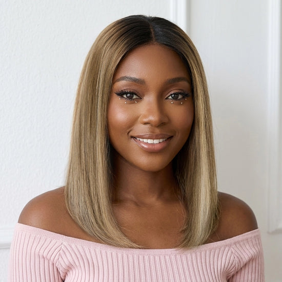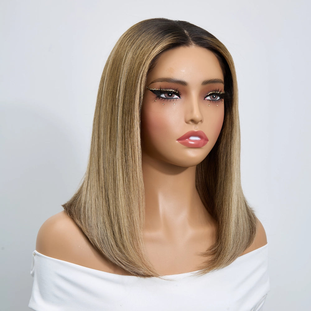 Glueless Pré-épilé Couleur Mèches Blondes Ombré 5x5 Bob Perruque Sans Colle Lisse
