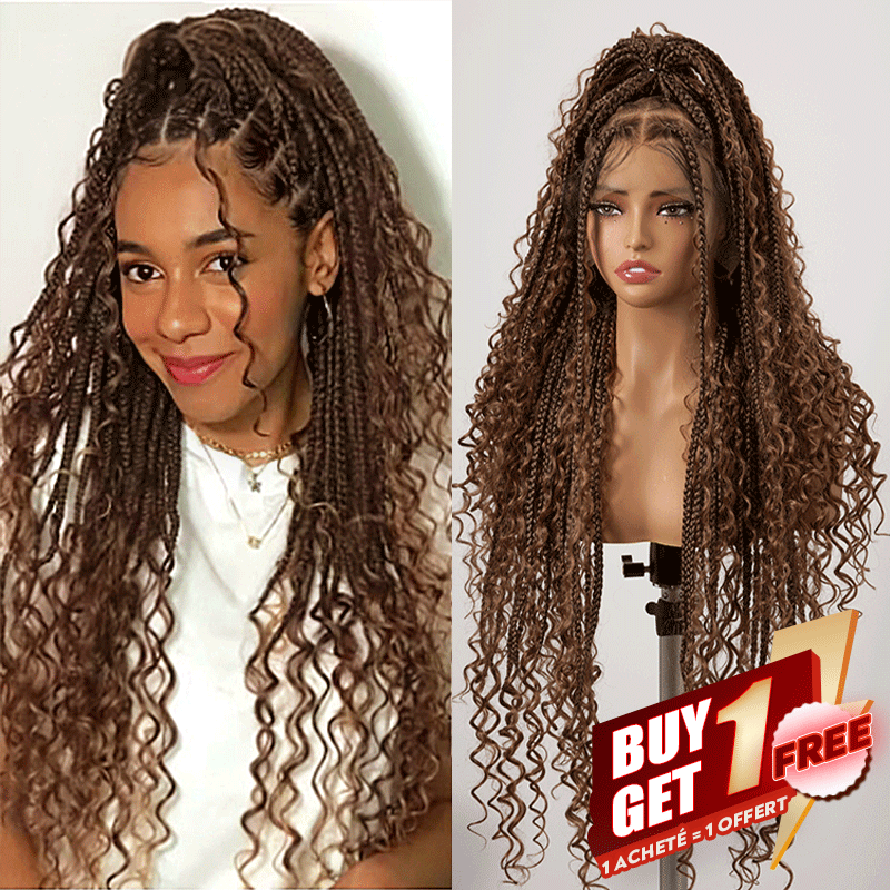 𝑩𝒖𝒚 1 𝑮𝒆𝒕 1 𝑭𝒓𝒆𝒆💥36 Pouces Perruque Tressée Bohème Brun Chocolat En Dentelle Complète Avec Cheveux De Bébé Synthétiques De Qualité Supérieure 300% Densité