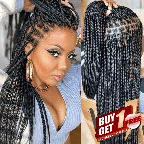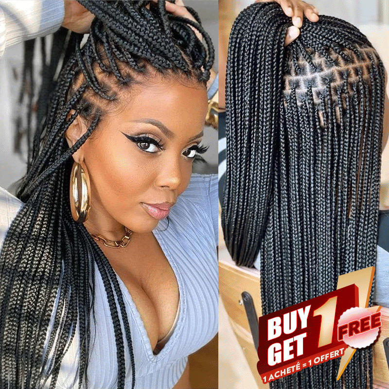 𝑩𝒖𝒚 1 𝑮𝒆𝒕 1 𝑭𝒓𝒆𝒆💥Perruque À Tresses En Boîte En Dentelle Intégrale Cheveux Synthétiques Qualité Supérieure 300% Densité