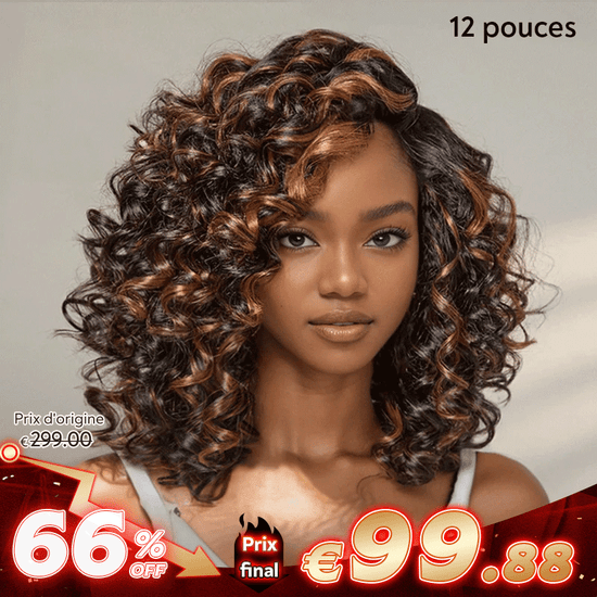 Boucles Rebondies Glueless Couleur Cuivre Highlight 7x4 Nœuds Blanchis Perruque Sans Colle