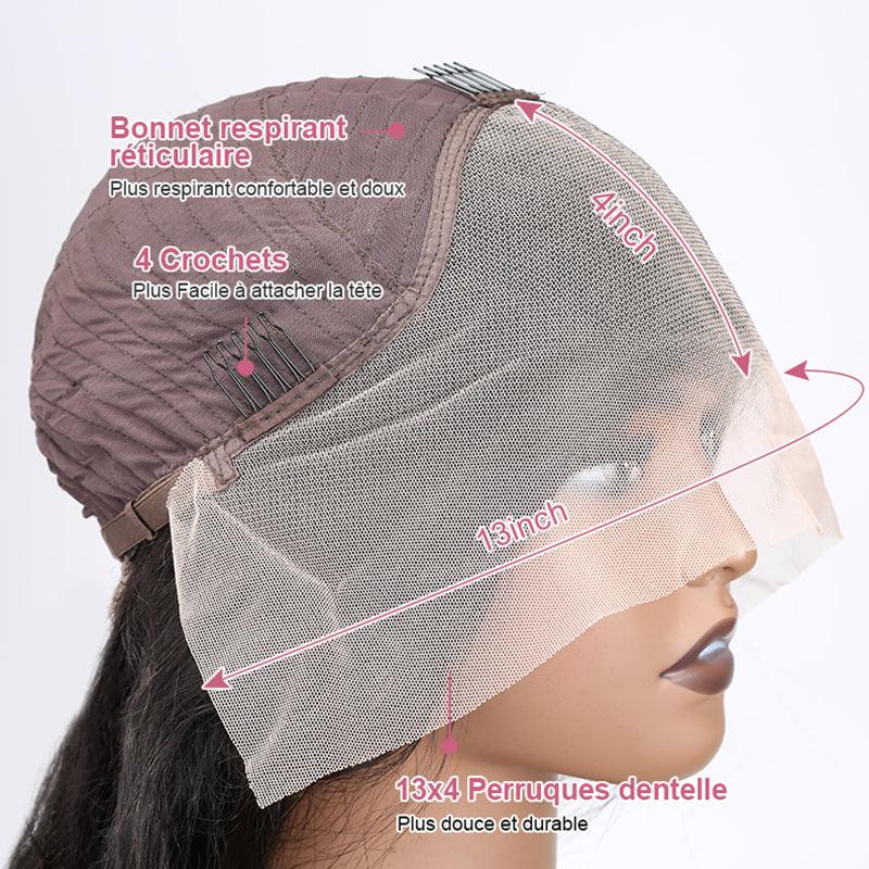 La taille du bonnet de la perruque est moyenne et convient à la plupart des gens. La circonstance est de 22,5 pouces avec des bretelles réglables. Vous pouvez l'ajuster pour l'adapter. Oui, nous pouvons personnaliser une grande casquette pour vous, cela prendra environ 7 jours pour produire.