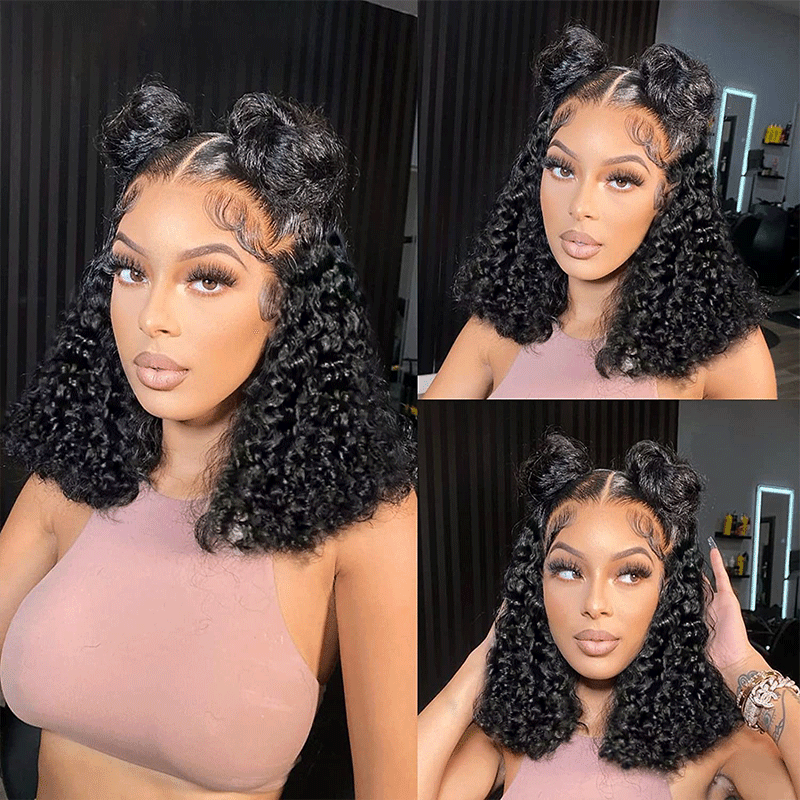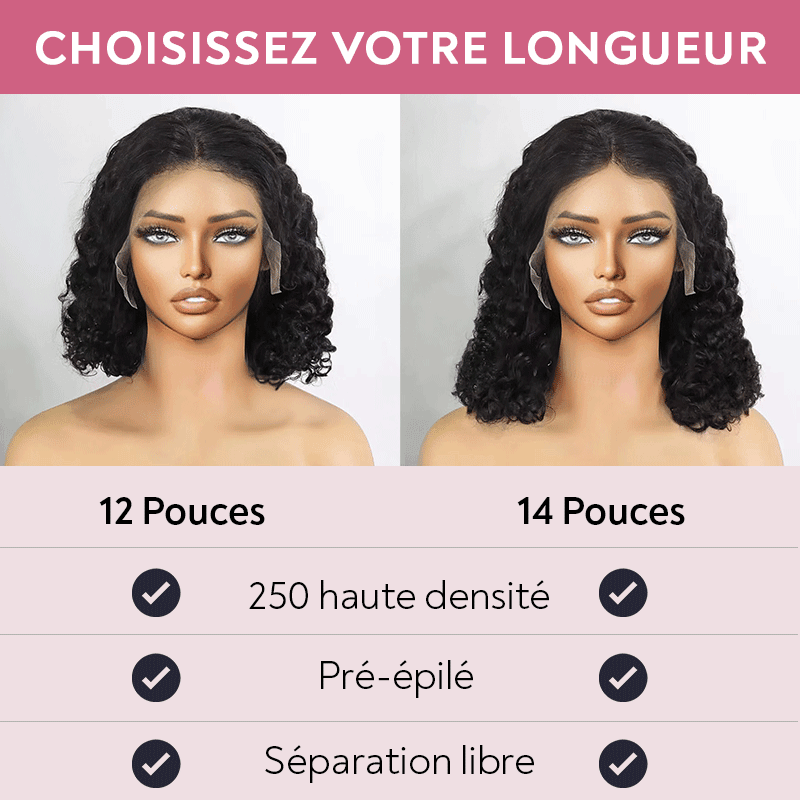 Séparation Libre Pré-épilé Grande Dentelle Rom Bouclé 13x4 Dentelle Bob Perruque 250% Densité