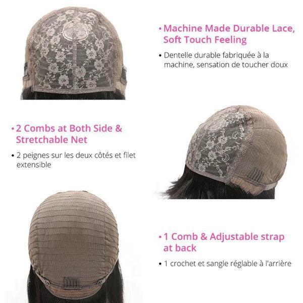 La taille du bonnet de la perruque est moyenne et convient à la plupart des gens. La circonstance est de 22,5 pouces avec des bretelles réglables. Vous pouvez l'ajuster pour l'adapter. Oui, nous pouvons personnaliser une grande casquette pour vous, cela prendra environ 7 jours pour produire.