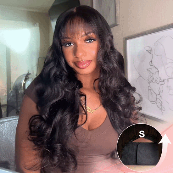 This Brazilian human hair bangs wig offers 180% density, making it the perfect accessory to give a natural look and enhance your face. The body wave hairstyle adds a sophisticated touch of style that will easily complete your look.