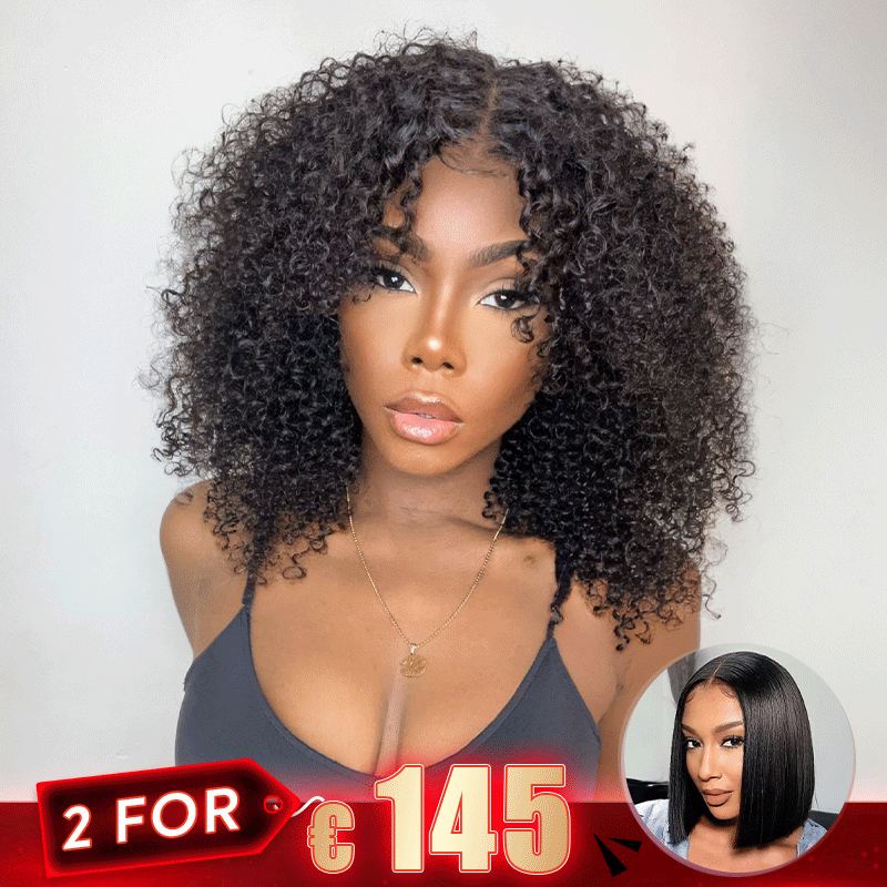 2 𝑭𝑶𝑹 €145.88🔥Glueless Bob 4×4 Noir Kinky Curly+Coupe Émoussée Soyeux Lisse 2x6 Dentelle Perruque